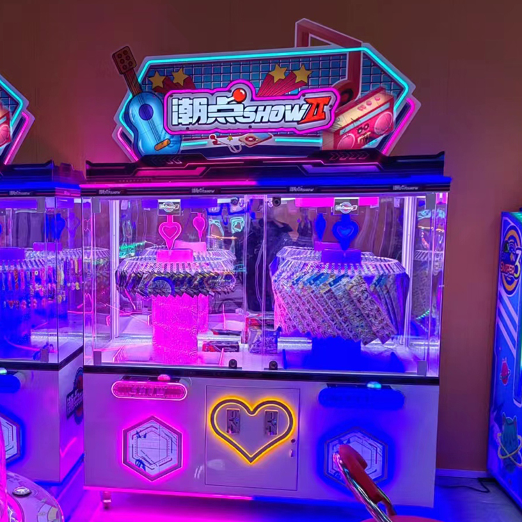 This gift vending machine features a stylish pink-blue design, equipped with 120 claw hooks for hanging various prize types such as lightweight toys, stationery, and snacks. Easy-to-understand gameplay: press the button and aim the pointer to win a hanging prize! Visually striking and packed with prize capacity, this machine reduces refilling frequency while boosting fun and revenue.