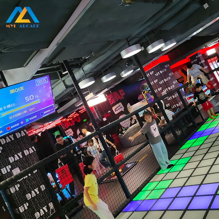 Key Words: interactive RGB floor panels for amusement arcade, digital playground effect equipment, smart game control equipment, load-bearing safety equipment, RGB modular lighting floor, Guangzhou MeiyiLian, digital interaction, competitive advantage, team play, group activities, programmable floors, guest retention, venue modernization, social engagement, safe play, event space, operator control, investment protection, repeat visits, participatory experiences, entertainment innovation