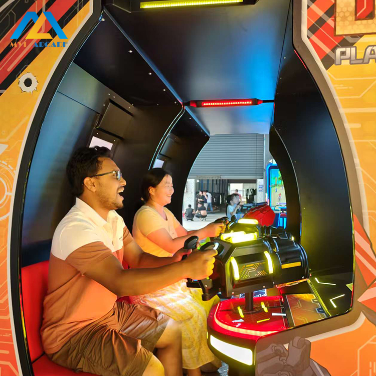 Group and family entertainment is a top priority for B2B clients. The group-play-enhanced, interactive immersive two‑player mech battle arcade with esports challenge shooting game machine design encourages cooperative and competitive play, maximizing dwell time and repeat visits.